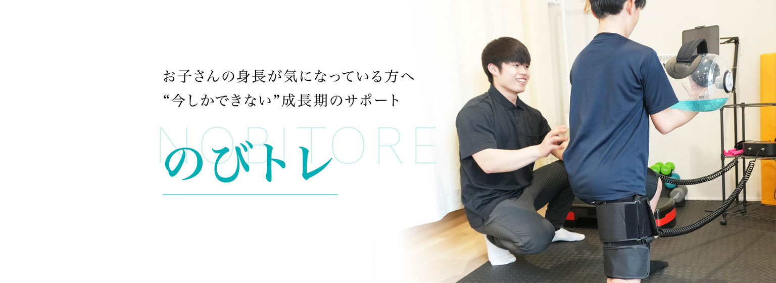 そして、伸びしろがあるお子さんに対しては、成長ホルモンの分泌を促すトレーニング機器「ファストトレーナー」と、成長期の子どもの身長を伸ばすために開発された「のび太郎」サプリメントを組み合わせ、お子様の身長と発育を科学的にサポートしていきます。